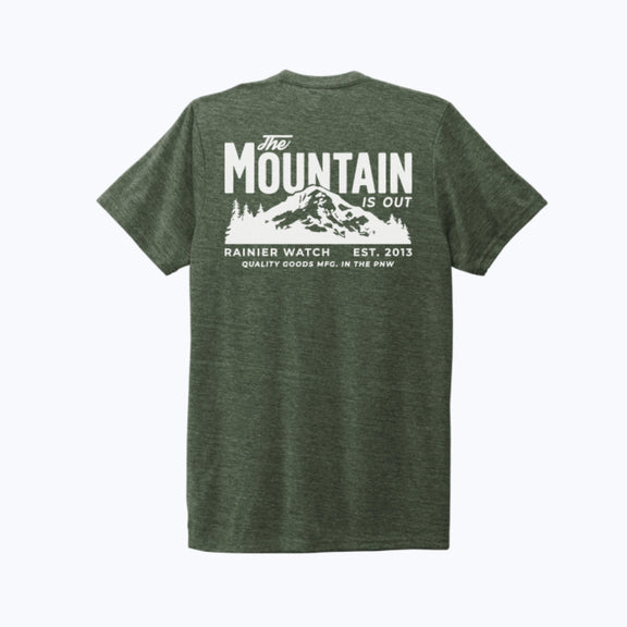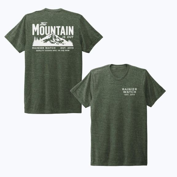 Show off your love for when "The Mountain is out" - the best phrase in the Pacific Northwest, now in Forest Green! It's the phrase that put Rainier Watch on the map!